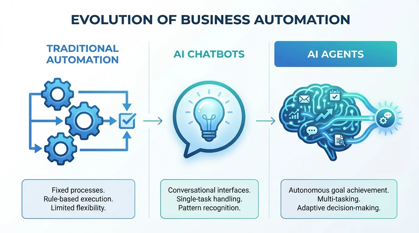 AI agents represent a genuine shift in what's possible for small businesses. They're not just faster chatbots. They're digital workers that can handle entire workflows, adapt to changing situations, and operate around the clock.